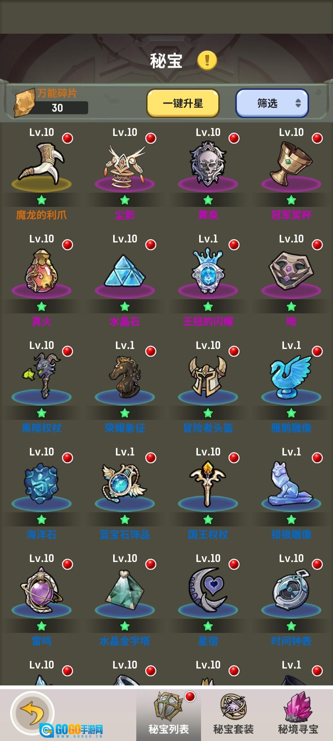 借助秘宝与巅峰之塔,能够增强队伍中全体英雄的战斗属性。