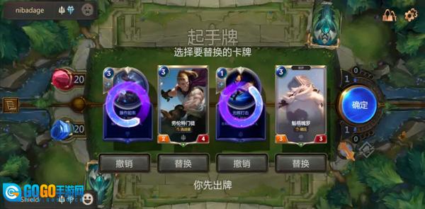 游戏开启,每位玩家抽取四张牌,先后手通过随机方式确定。后手玩家不持有幸运币。如同炉石游戏一样,每位玩家针对自己不满意的初始手牌,仅能进行一次替换操作。完成手牌替换后,进入战斗环节。