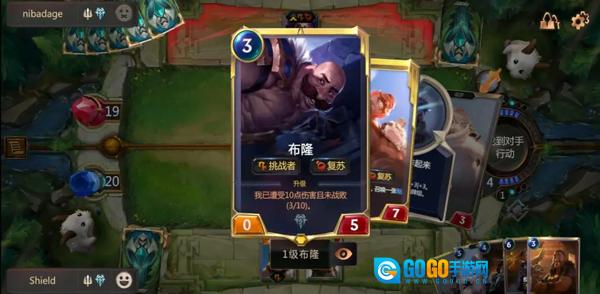 下方方框内包含卡牌描述,其中盖伦的效果为“复苏”(词条“复苏”的效果将在下文予以介绍)
