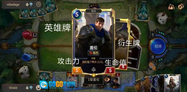 英雄牌能够依据卡牌描述所规定的任务来实现升级。完成升级后,英雄牌会拥有全新的身材以及更为强力的效果,同时其衍生牌也会获取新效果。例如,盖伦的任务便是打击两次。