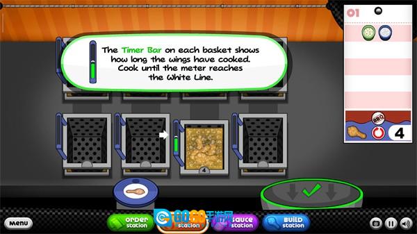9、每个篮子上的计时器条展示了鸡翅的烹饪时长,在此我们要把鸡翅煮至白线所对应的位置。