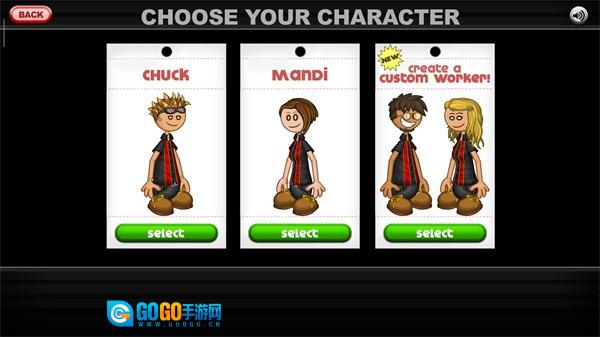 3、挑选你想玩的人物角色,此处有chuck、mandi可供你选择。