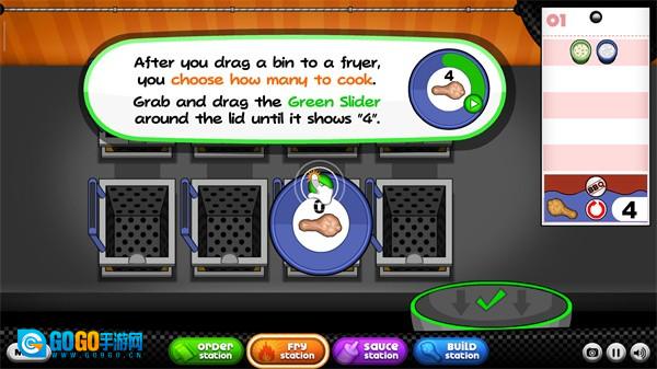 8、将盒子拖入炸锅后,你能够选择烹饪的量,抓住盖子周边的绿色滑块并拖动,直至滑块显示“4”。
