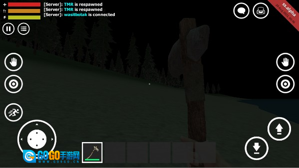 3、接着拿出武器,点击瞄准便能开火(通常是石斧,若想获取其他武器则需自行打造)。