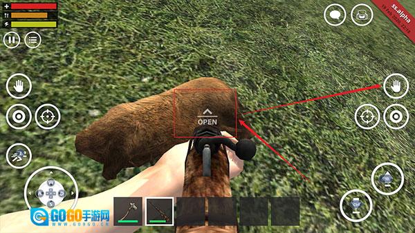 4、击倒野猪后,靠近野猪会出现“OPEN”标识,此时点击小手图标就能打开查看。
