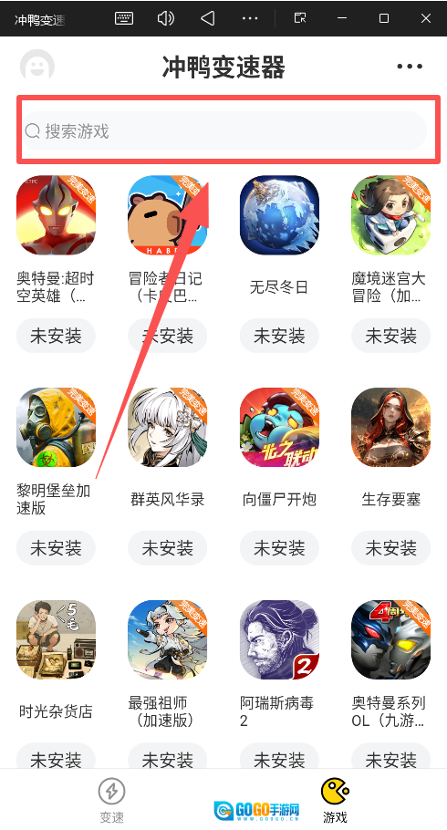 1. 开启App,可在“游戏”页面进行浏览,也能直接运用顶部的“搜索游戏”功能。
