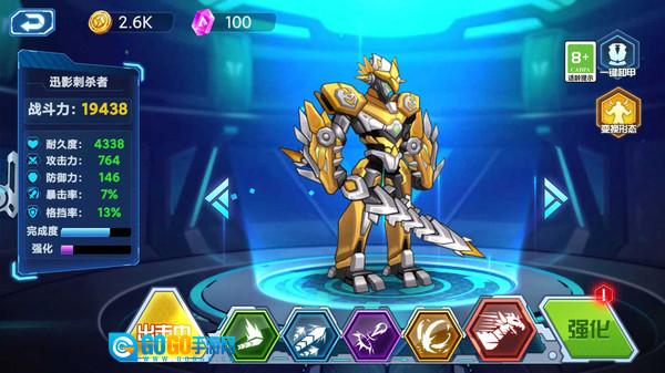 在这款机甲战斗游戏中,玩家能够操控风格各异的机甲去击败敌人。战斗期间,机甲可随心变换形态,而且玩家还能对机甲及机甲龙的组件进行升级与组装,以此提升机甲的战斗力与防御力。游戏里有着绚丽的技能特效,能让玩家充分体验到拳拳到肉的打击快感。