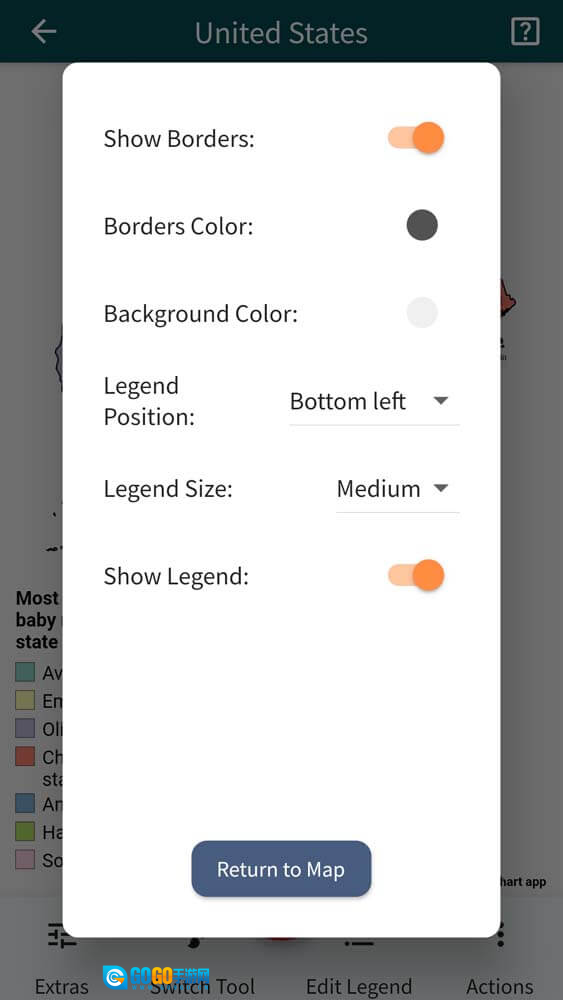 5、你也能够对地图的背景或边框颜色进行更改,还能隐藏元素、设定图例样式等。