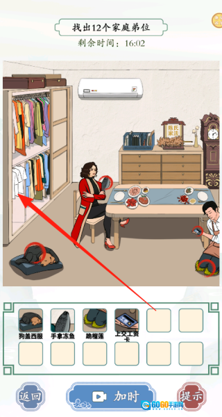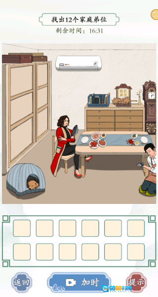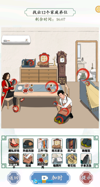 2、在本关,你需要在规定时间内,找出场景里隐藏的12处特定物品或者异常细节。