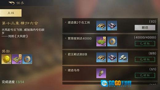 在游戏初期,玩家能够依据游戏任务的引导,对自己的领地进行升级,提高手中武将的等级,并对武将自带的战法进行合理搭配。