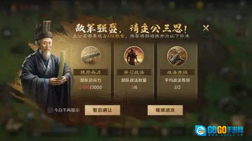 若各位玩家在开垦内城土地或城外领地时,遭遇无法战胜对手的状况,又或是部队实力不足,系统将会提示需强化部队战力。