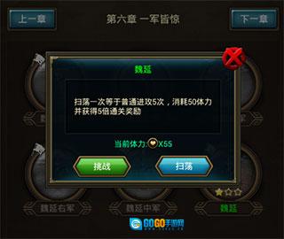 历史上的名将们,将逐一现身,你必须凭借武力去征服他们。这并非普通的卡牌游戏,武将得通过“战斗”来获取。