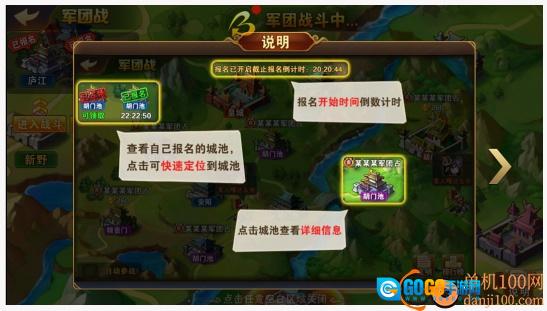 2、每个军团能够同时报名参与两座城市的争夺。当前机制依据报名时间先后顺序判定,即每座城市最早报名的三支军团可参与城池争夺。在后续版本中,将会改为依据军团的贡献度排名来进行报名。