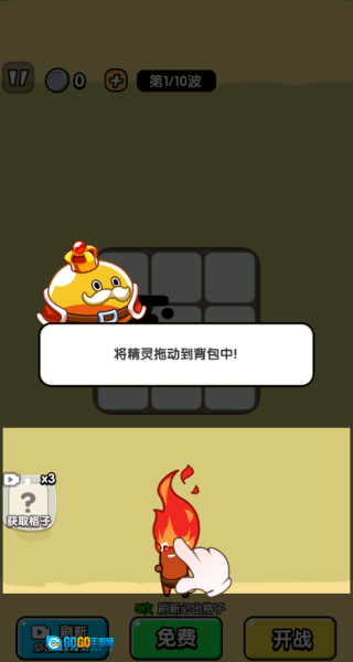 1. 游戏开始时,把初始精灵拖进战场背包,在后续解锁新角色之后,就能组建多英雄战斗小队。