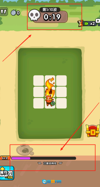 3、一旦进入战斗,精灵便会自动对入侵植物展开攻击。与此同时,界面顶部会展示剩余攻击波次以及实时战况。