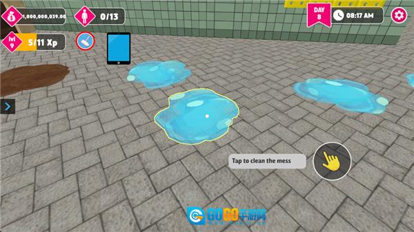 1、玩家刚进入游戏时,需移动至场景里,点击清理脏乱的地面。