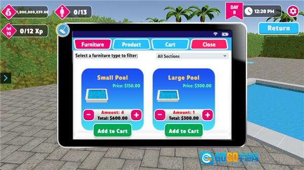 8、待乐园知名度有所提升时,择机开展规模扩张。开启全新区域,拓展经营规模,并聘请专业团队负责日常事务。待团队运营成熟,您便能专注于实现核心目标——打造世界顶级的水上乐园。
