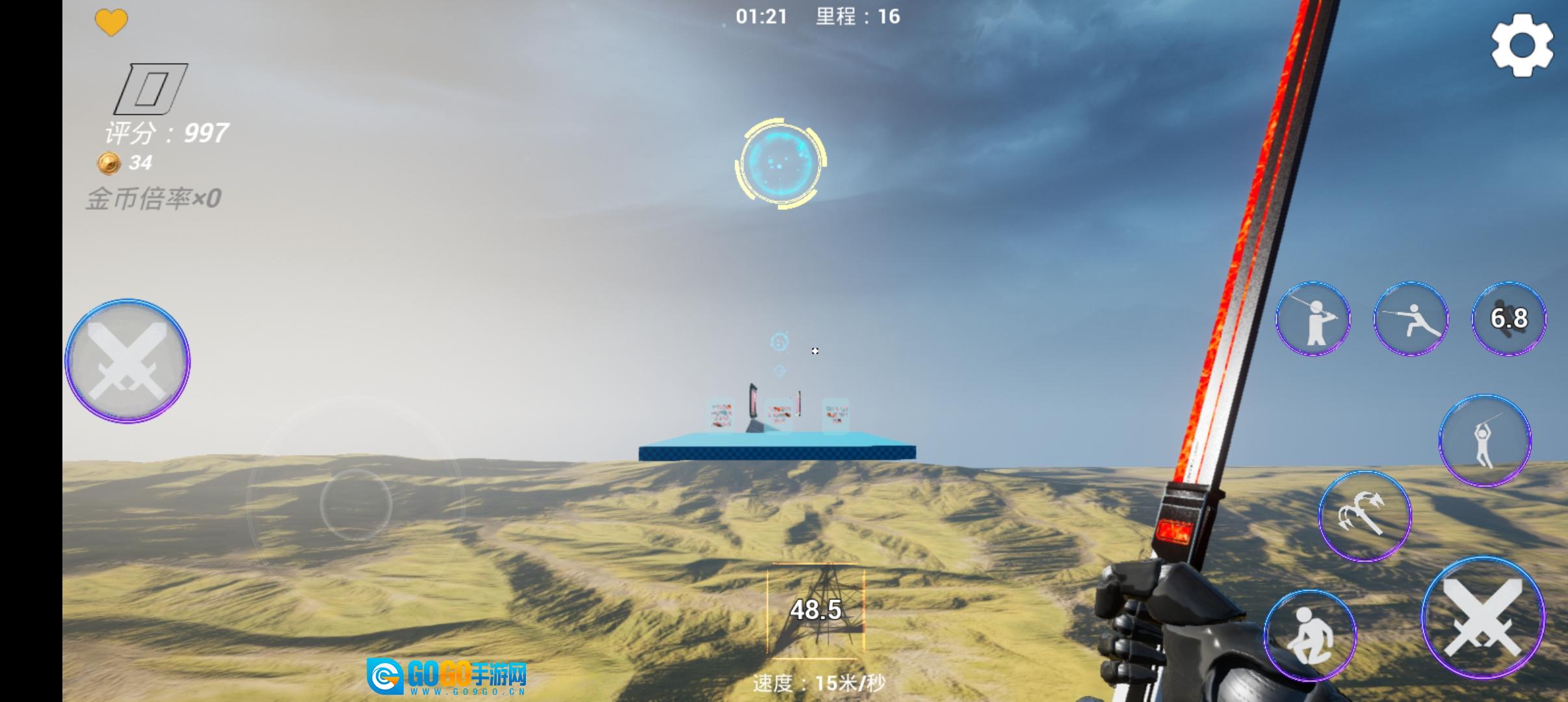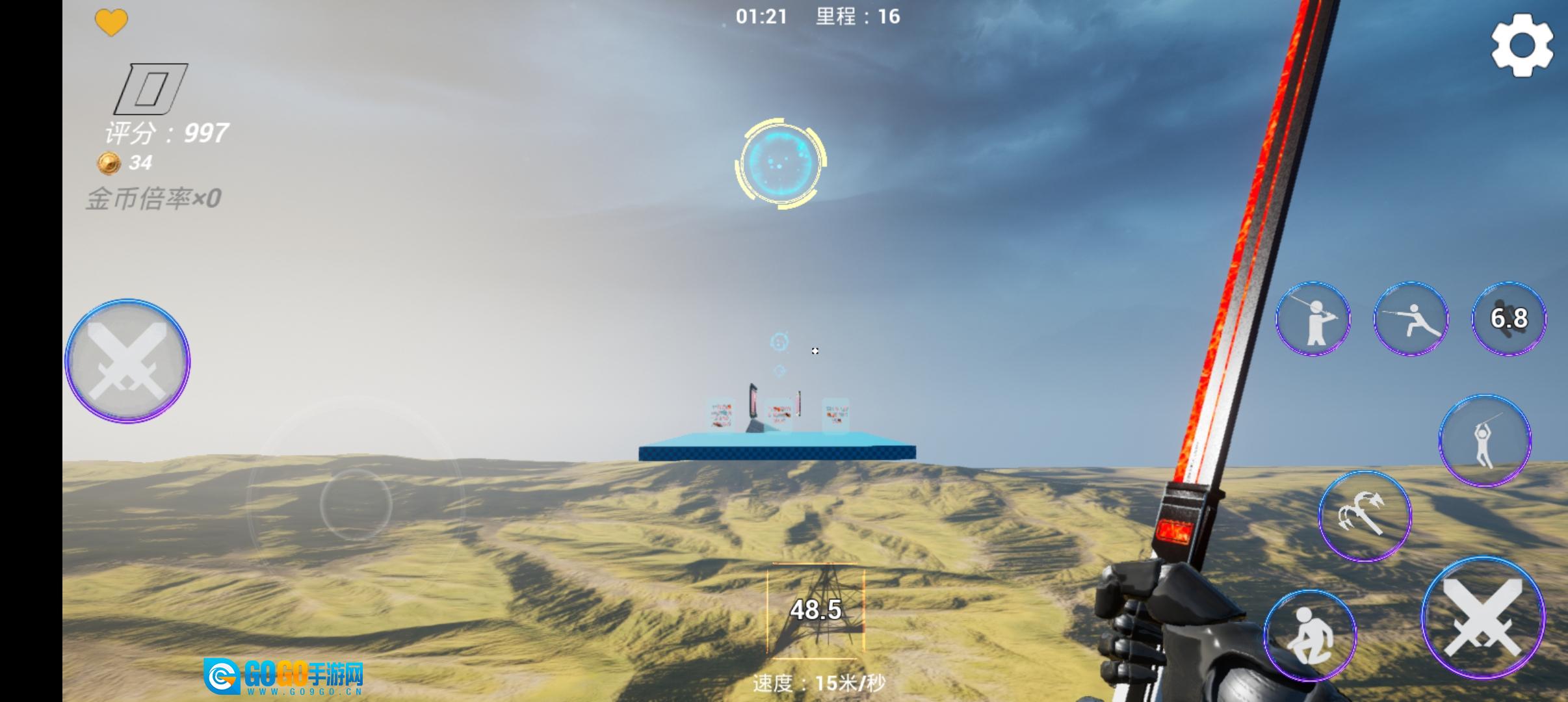 5、倘若碰到黄色圆框提示,轻点右侧的钩子按钮,便可快速穿越障碍。