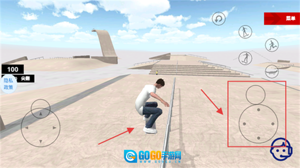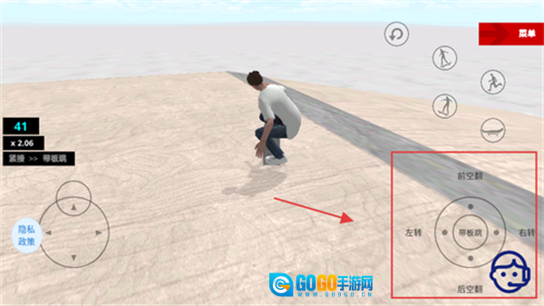 1. 借助虚拟摇杆来掌控滑板的移动方向,再结合手势操作,从而完成翻转、抓板以及平衡等各种特技动作。