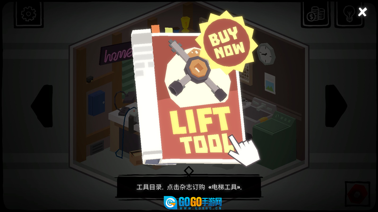 2、翻开桌子上的杂志,能够获取电梯工具。