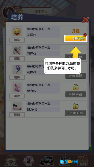1在游戏的起始阶段,应当把个人技能培训作为优先投资方向,因为提升魅力与口才这两项属性,对直播事业有着直接的助力。