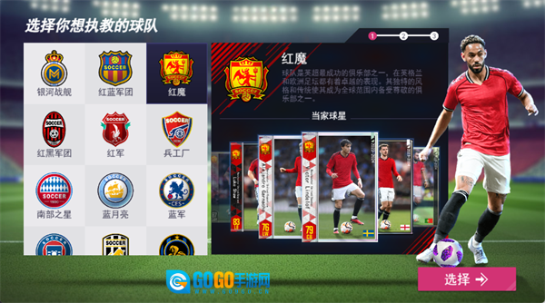 你可以选择一支自己心仪执教的球队,这里有像 “红魔” 这样风格多样的队伍供你挑选。每支球队都拥有独特的当家球星,并且有着各自不同的背景。在做出选择时,不妨结合你对球队风格的喜好来决定。