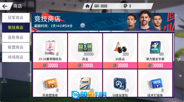 在商店里,能够用赛事获取的货币来兑换赛季随机包、训练点、潜力激发手册等各类资源,从而推动球队阵容与战术的升级。