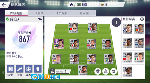 管理球队阵容时,能够对阵型进行调整(比如 4 - 4 - 2 Flat 阵型),还可以开展球员任命工作、制定战术以及挑选教练。在此过程中,要留意阵容评分与化学反应,以此来优化球队的战斗力。