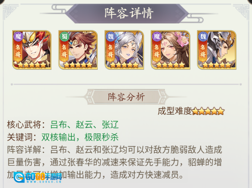 阵容构成:吕布、赵云、张春华、貂蝉以及张辽。