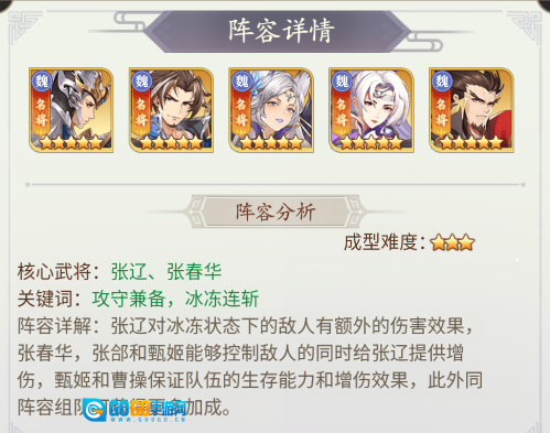 阵容构成:张辽、张郃、张春华、甄姬以及曹操