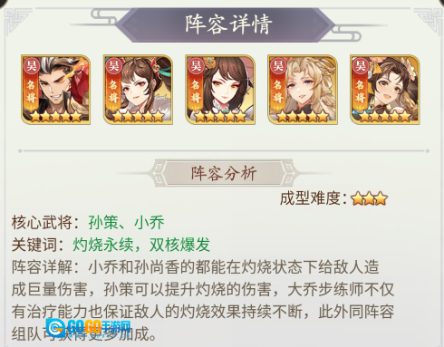阵容构成:孙策、孙尚香、大乔、步练师以及小乔