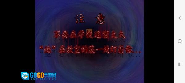 3、提示限时机制:“不要在学校逗留太久”。当看到“她在教室某处盯着你”时,需即刻远离有红色光影的窗户区域,迅速前往走廊尽头,以此规避视线锁定。