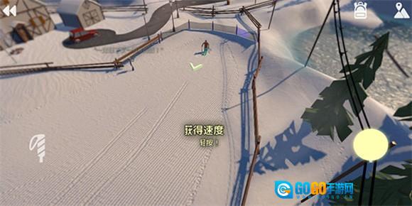 1在滑雪过程里,只需轻轻按下左右两侧的按钮,便能加速向前滑行,帮助玩家在滑道上保持速度。