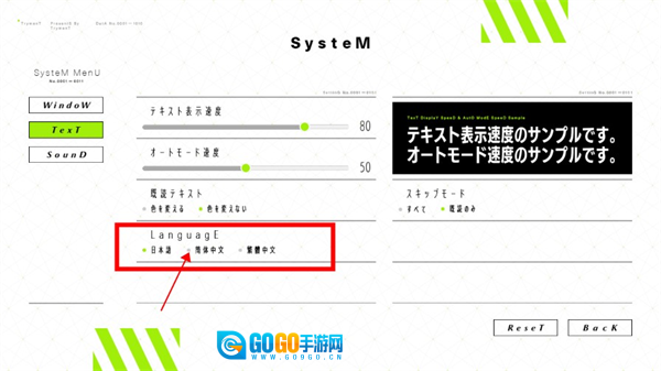 1. 进入游戏后,点击“Menu - system”,选择简体中文就行。