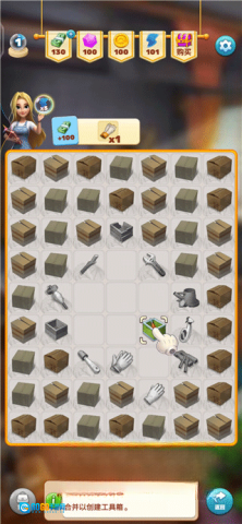 2、要是金钱不够,点击右下角进入消除小游戏,把相同工具拖动合并,完成任务就能获取金钱用于装修。