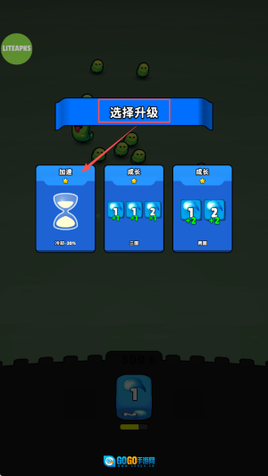 4、能力升级:进入英雄升级界面后,点击“选择升级”按键,从加速、武器、盾牌等选项里挑选一项来提升能力。
