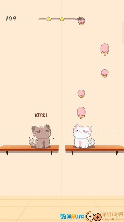 你能够在游戏里迅速将猫咪移动到合适的位置,冰淇淋便会自动落入猫咪口中。