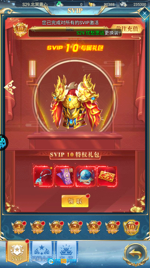 2、游戏一经上线,即刻赠送vip10,玩家可于vip界面免费领取vip1至10级的奖励。