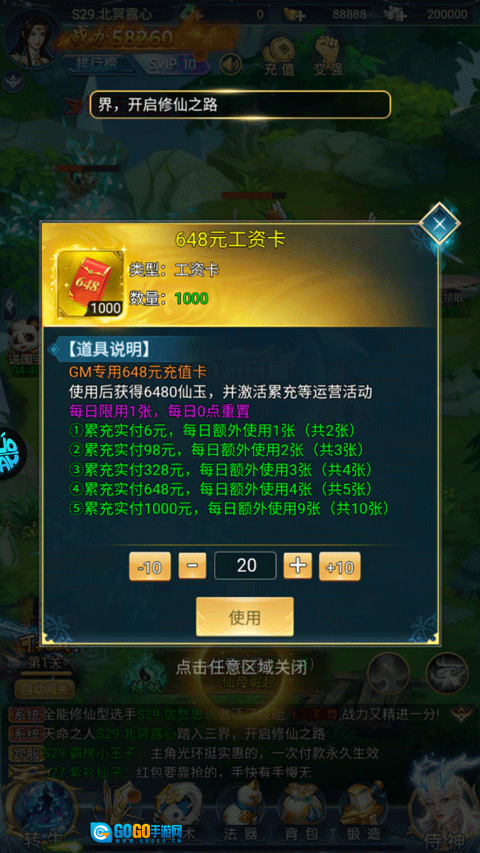 1. 游戏每天能够使用648工资卡,通过充值能够解锁更多使用次数。