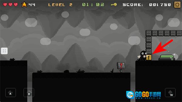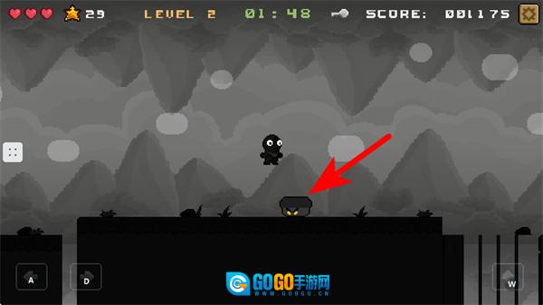2、当在关卡里遭遇长着黄色眼睛的黑色敌人时,要凭借灵活的走位来躲开它们的攻击,防止角色受伤,确保角色能安全地推进关卡。