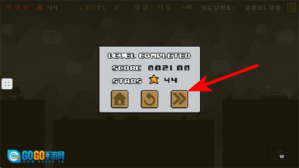 4、完成游戏关卡后,点击带有双箭头的按钮,就能进入下一关继续游戏,此乃持续挑战新关卡的关键操作。