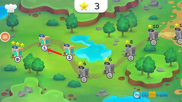 于地图界面浏览已解锁关卡,查看每关的星级进度。此示例以【第一关】作为起始点,循序渐进地引导新手熟悉操作步骤。