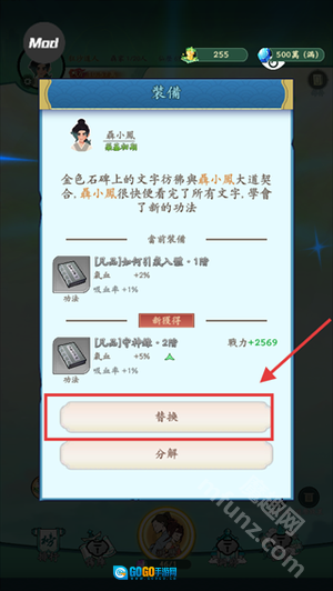 4、获取新功法后,用其替换旧功法,以此提升气血、吸血率以及战力。