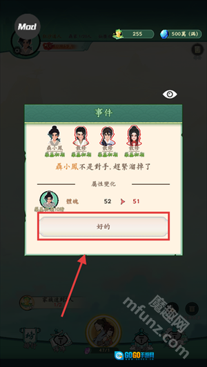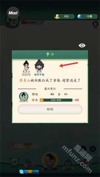2. 战斗失利,体魄数值由52下降至51,确认后可继续。