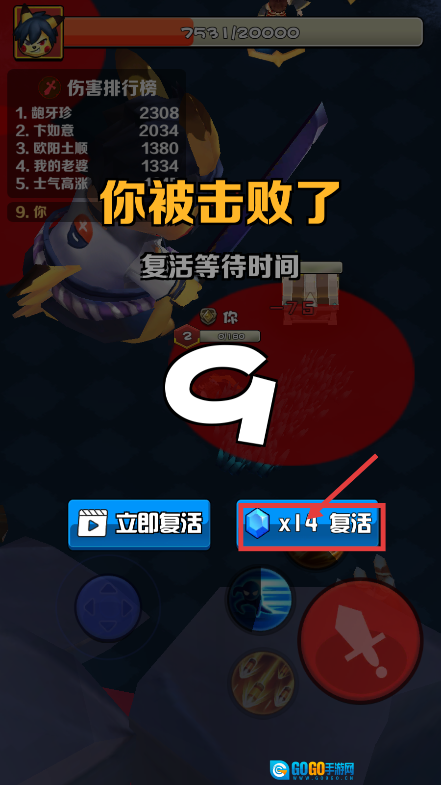 4、要是不幸被击败,你可以选择【x14钻石复活】,从而继续投入战斗。在积累一定战斗经验后,对策略做出调整,努力在伤害排行榜上提高自己的名次。