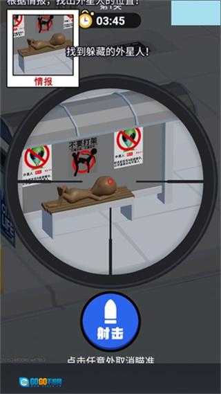 《狙击外星人:找到外星人》是一款极具挑战性的射击游戏,它着重考验玩家的观察力和反应速度。在游戏里,你将化身为地球守护者,手持狙击枪,去抵御那些悄然降临的外星生物。游戏场景设定在繁华都市的复杂街道,在这里,外星目标巧妙地伪装成人类,你需要凭借敏锐的观察力,精准识别出这些隐藏的敌人。高度逼真的场景与精心设计的隐藏目标,为玩家带来紧张刺激的搜寻与狙击体验。