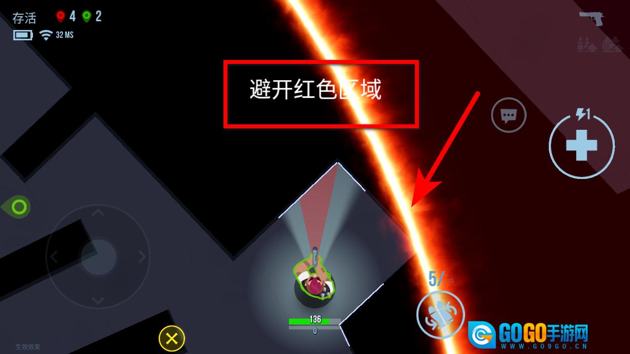 3、在游戏进行过程里,要留意避开红色区域,处于这个区域会让角色受到持续不断的伤害。