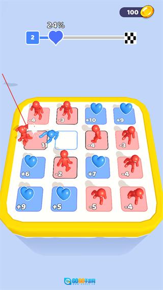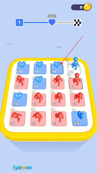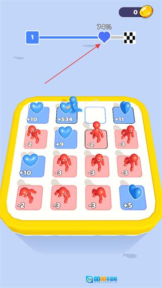 2、选中蓝色爱心区域,就能获取对应数量的爱心值,使上方的进度条增长。当进度条到达终点,便意味着取得胜利。
