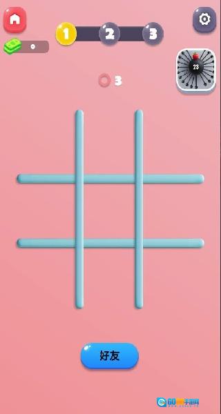 2. 选择好友对战,随后进入井字棋游戏,依据三子连线规则展开对战。