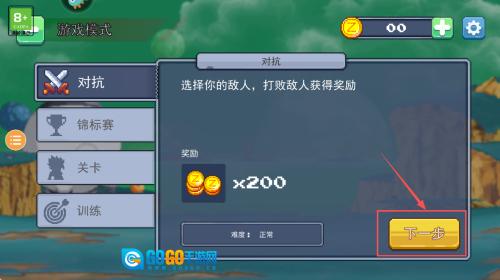 2. 模式选择:进入游戏模式界面后,点击“对抗”按键,进而选择对抗模式。
